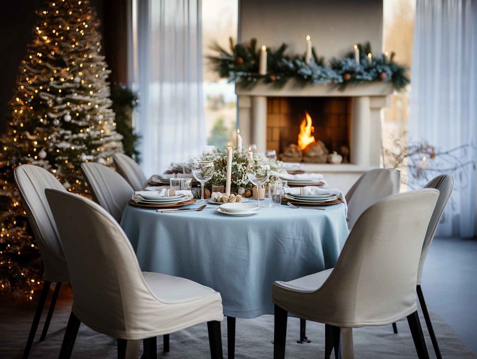 Explore a range of festive colors beyond our standout Sky blue, from classic reds to winter greens, designed to elevate your holiday dining. A thoughtful gift for hosts, our linen tablecloths bring sustainable elegance to Christmas celebrations. Order now and infuse your table with the magic of Christmas. 🎄✨