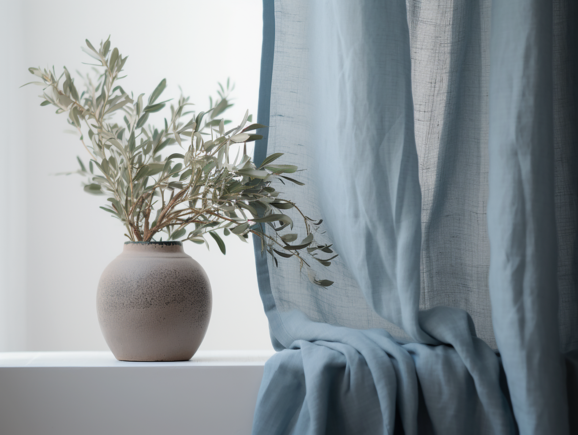 Dusty blue linen curtains